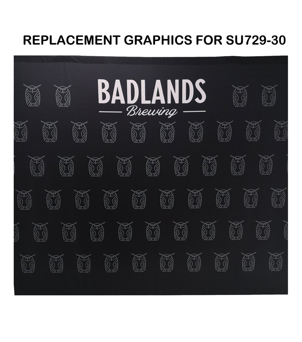 Replacement Full Color Graphics Single sided 10’w x 8’h with pole pocket top and bottom; Replacement graphics will work for our sku # SU729-30 Display, Media Wall, Backdrop; Artwork is sublimated on premium polyester knit fabric; High-quality material, durable; Available in every pantone PMS color and with Unlimited Graphics possibilities to create your unique display, Media wall, Backdrop; Dye-sublimation printing delivers vivid graphics; Step and Repeat Graphics are a popular choice for this item; 3″ pole pockets at the top and bottom to slide the Graphics; Hardware (Adjustable Display stand) and soft case, carry bag are not included; For complete kit, see our sku # SU729-30.